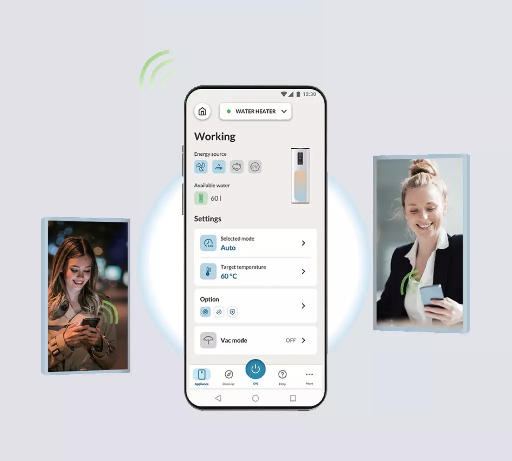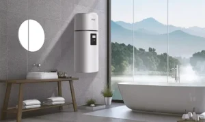 Znajdź instalatoraPompy ciepła AQUA CWU M8 ECO MINI to urządzenia do przygotowania ciepłej wody użytkowej o dostępnych pojemnościach 82, 102 oraz 149 litrów. Kompaktowa konstrukcja i wysokość do 1184 mm pozwalają na bezproblemowe umieszczenie w wybranym pomieszczeniu i łatwy montaż. Wysokiej jakości sprężarka inwerterowa wpływa na wysoką efektywność pompy ciepła. Wykorzystane materiały i innowacyjna technologia gwarantują odporność na korozję i długą żywotność. Za pomocą dużego i czytelnego dotykowego sterownika znajdującego się na panelu można ustawić aż 7 trybów pracy dostosowanych do preferencji użytkownika.