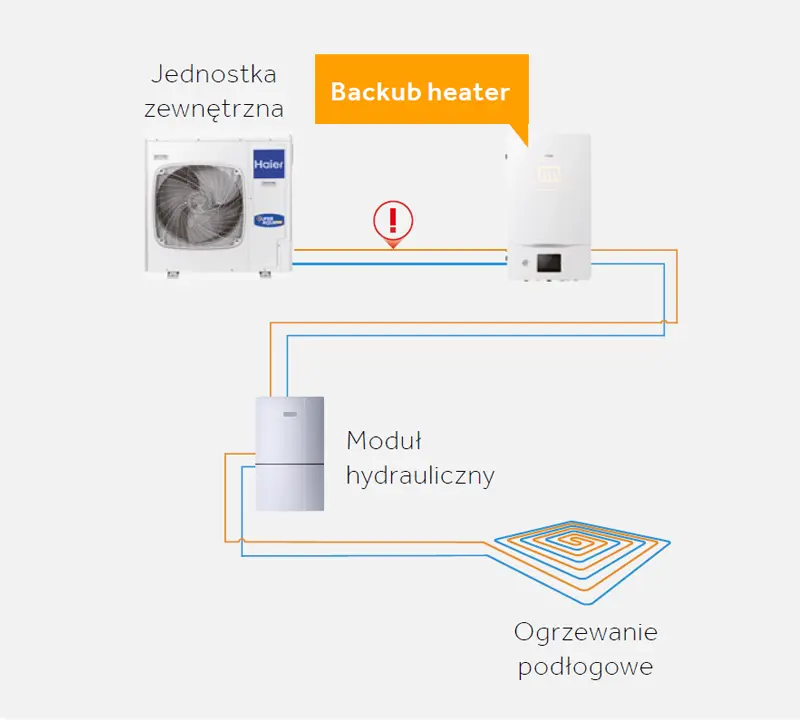 HAIER SUPER AQUA umożliwia połączenie z już istniejącym bojlerem. W przypadku nieprzewidzianych problemów z urządzeniem, bojler oraz grzałka zapasowa mogą działać osobno lub w połączeniu, zapobiegając przed całkowitym wyłączeniem systemu grzewczego.