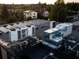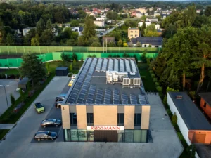MRV 5-H zapewnia komfortową temperaturę w Parku Handlowo-Biurowym w Puszczykowie. Za równomierne rozprowadzenie powietrza odpowiedzialne są jednostki kasetonowe CASSETTE Mini. Instalacja gwarantuje całoroczną stabilność pracy obiektu, łącząc komfort użytkowników z wysoką efektywnością energetyczną.