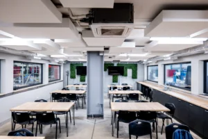 W budynku producenta konstrukcji stalowych PROMOSTAL zrealizowano kompleksową instalację klimatyzacji Haier, zaprojektowaną z uwzględnieniem funkcji poszczególnych pomieszczeń. Przestrzenie biurowe, szatnie, recepcja oraz stołówka zostały wyposażone w zróżnicowane typy jednostek – od modeli ściennych, przez kasetonowe, po systemy kanałowe. Centralne sterowanie zapewnia efektywną kontrolę temperatury i optymalizację zużycia energii w całym obiekcie.