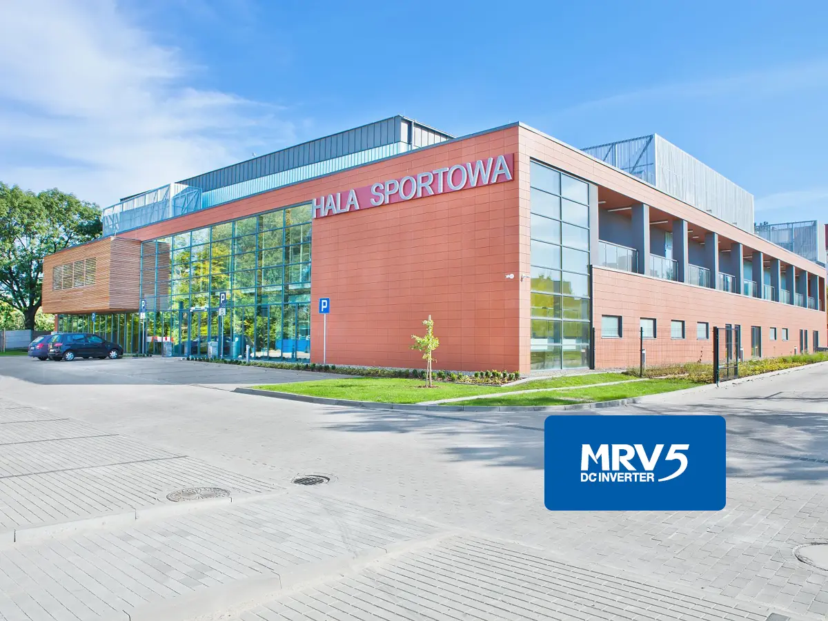 W obiekcie sportowo-widowiskowym w Krotoszynie zastosowano wydajny system MRV 5 o mocy 224 kW, który elastycznie reaguje na zmieniające się warunki użytkowania. System automatycznie dostosowuje swoją wydajność do liczby użytkowników, zapewniając komfortową temperaturę oraz wysoką efektywność energetyczną przez cały rok.